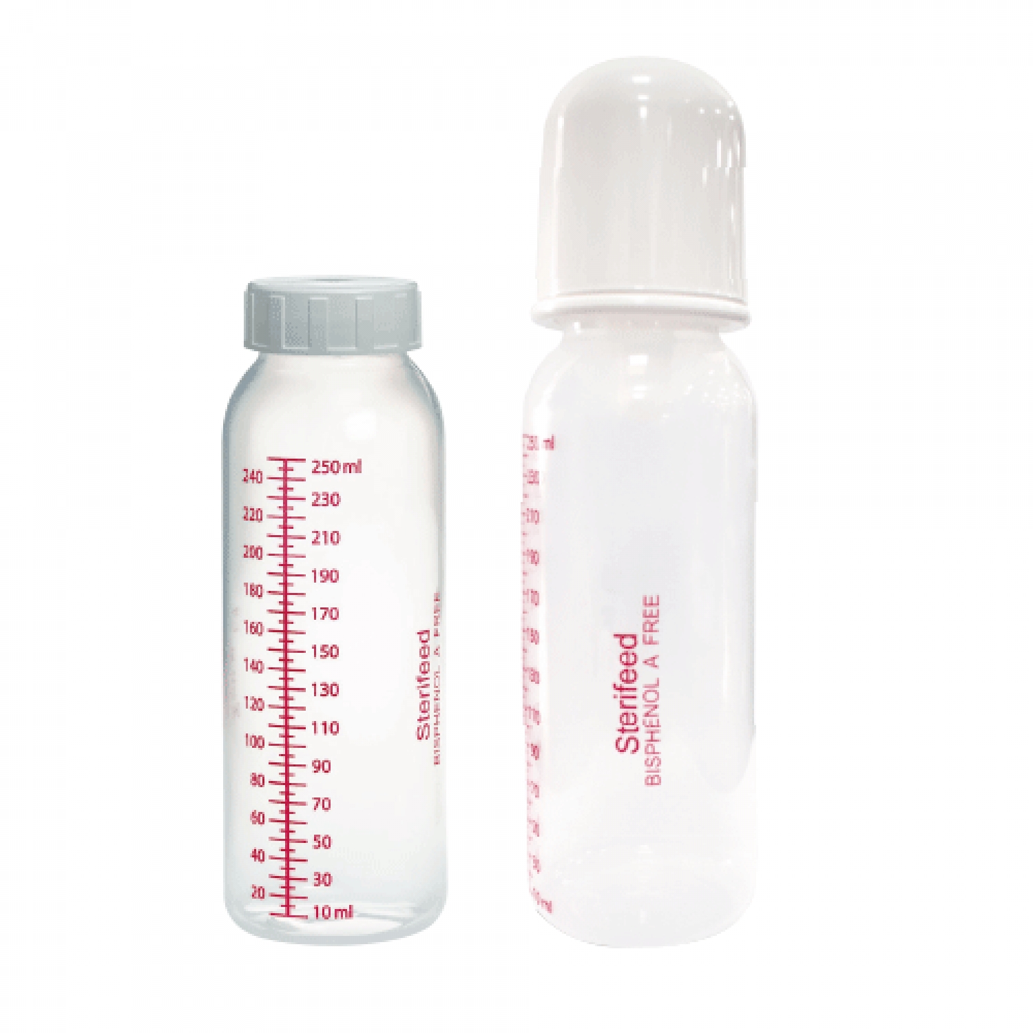 Plastic bottle with a capacity of 250 ml for hospital use for feeding, storage and/opasteurization of breast milk.